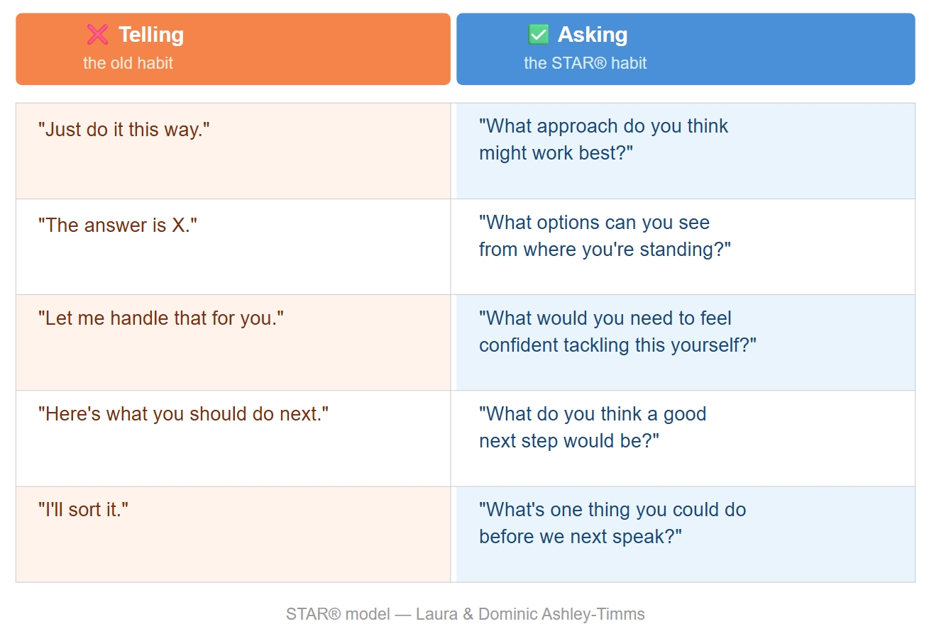 From Telling to Asking – the practical shift that brings STAR to life in your business.
